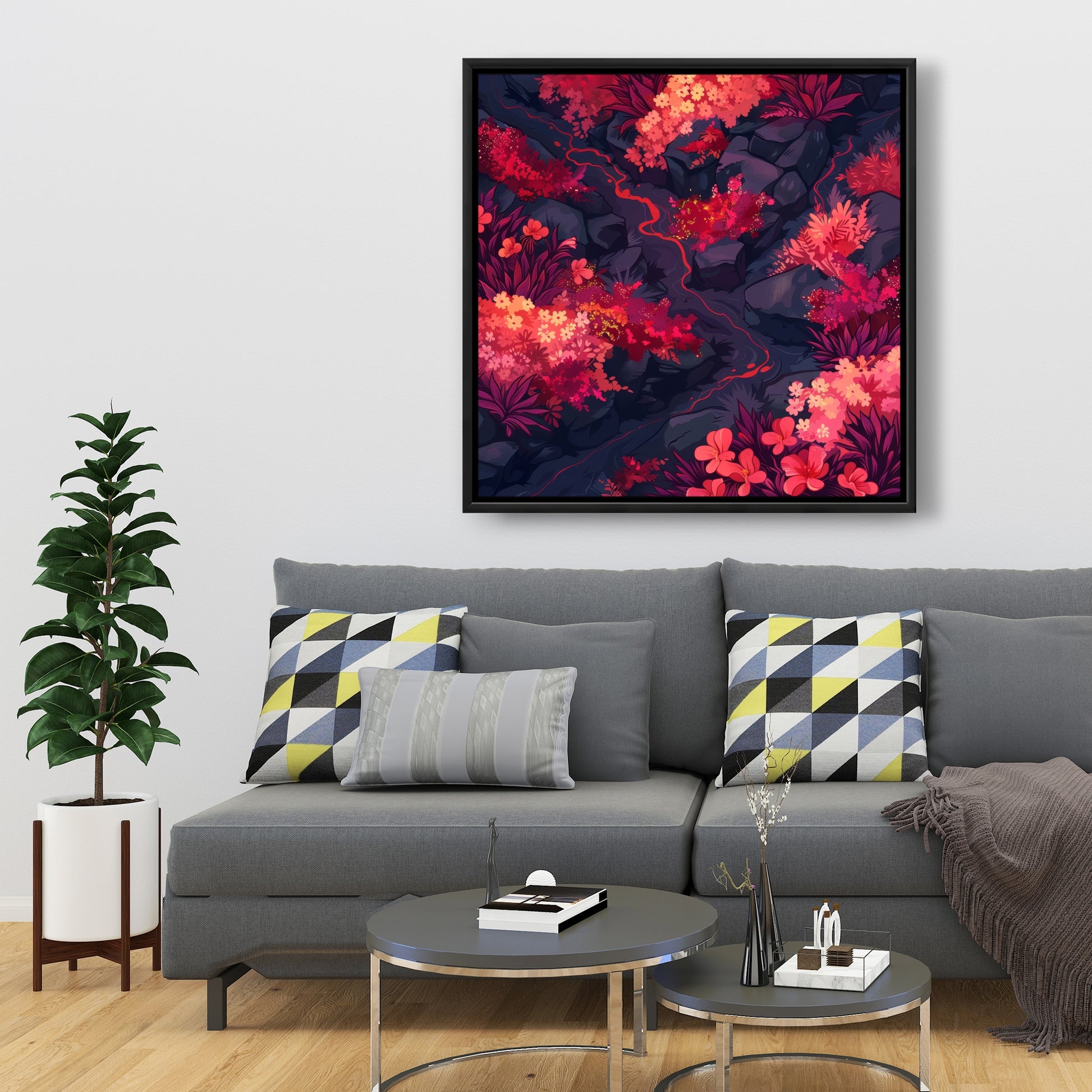 Burning plants - 36"x36" Framed canvas