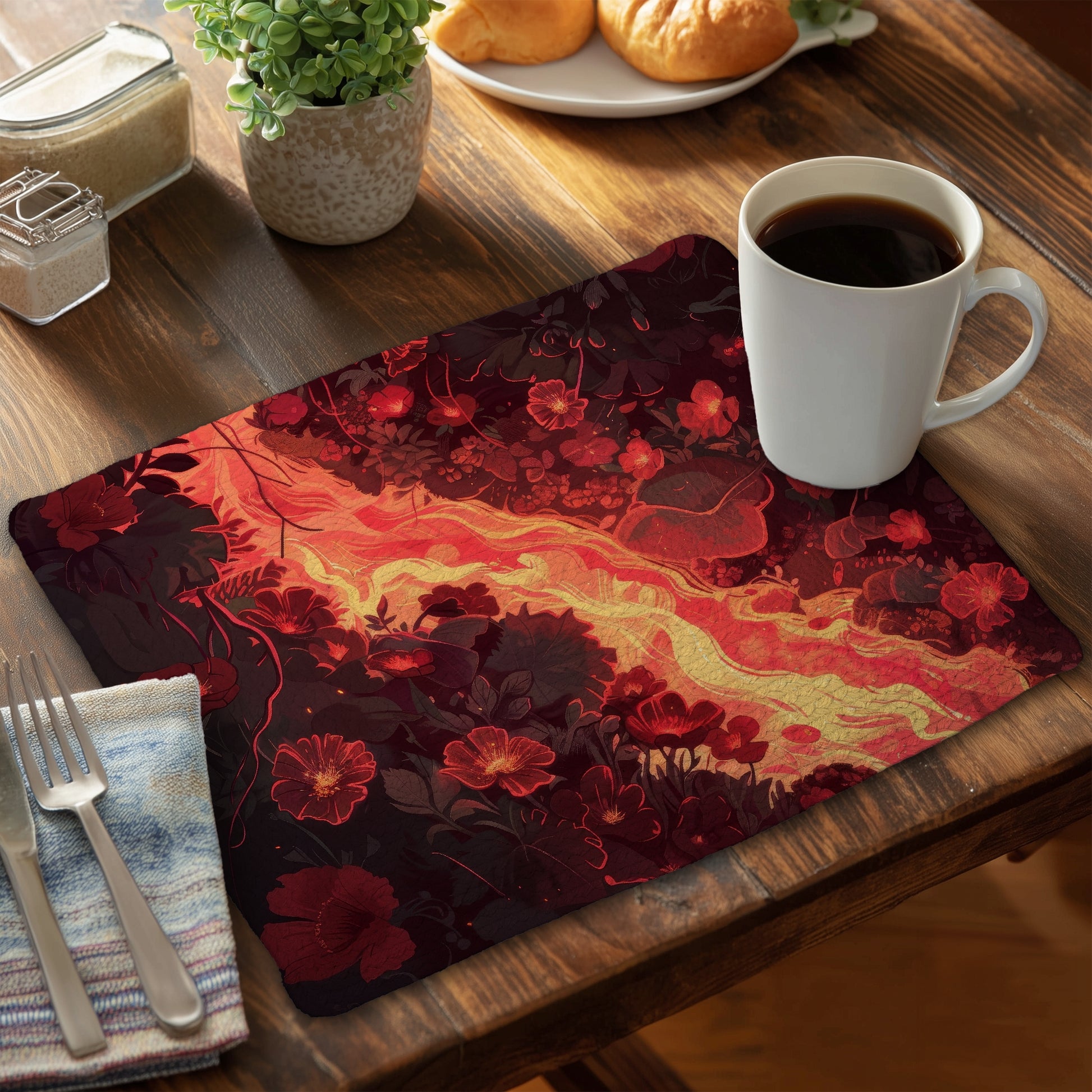 Seering Flowerbed - Red Braided Polyester Placemat for Home Decor