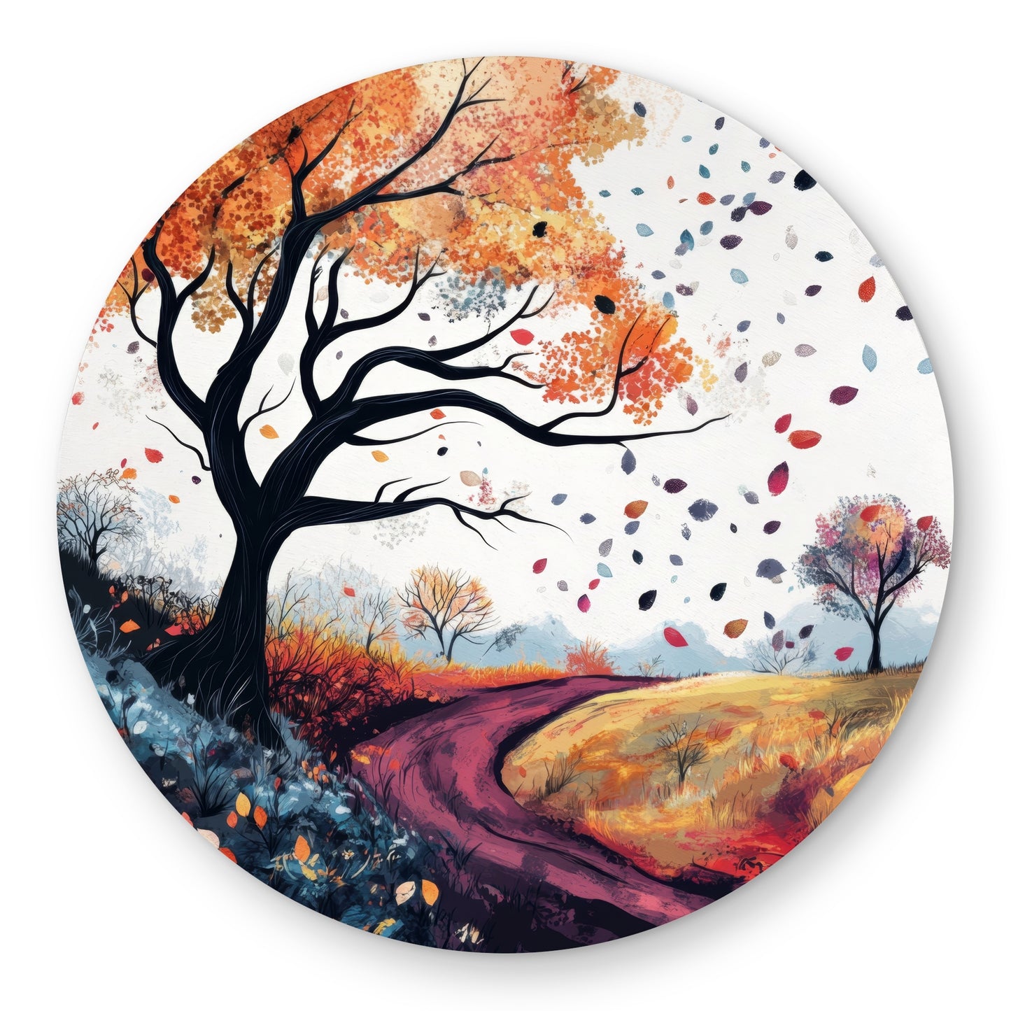 Blowing leaves is an eye-catching orange round outdoor area rug designed to elevate your home decor. Perfect for patios, decks, or any outdoor space, this stylish rug adds a vibrant pop of color while providing comfort underfoot. Made from durable, weather-resistant materials, Blowing leaves is built to withstand the elements, making it ideal for both sunny days and light rain. Its unique round shape creates a welcoming atmosphere, perfect for gatherings or quiet moments of relaxation.