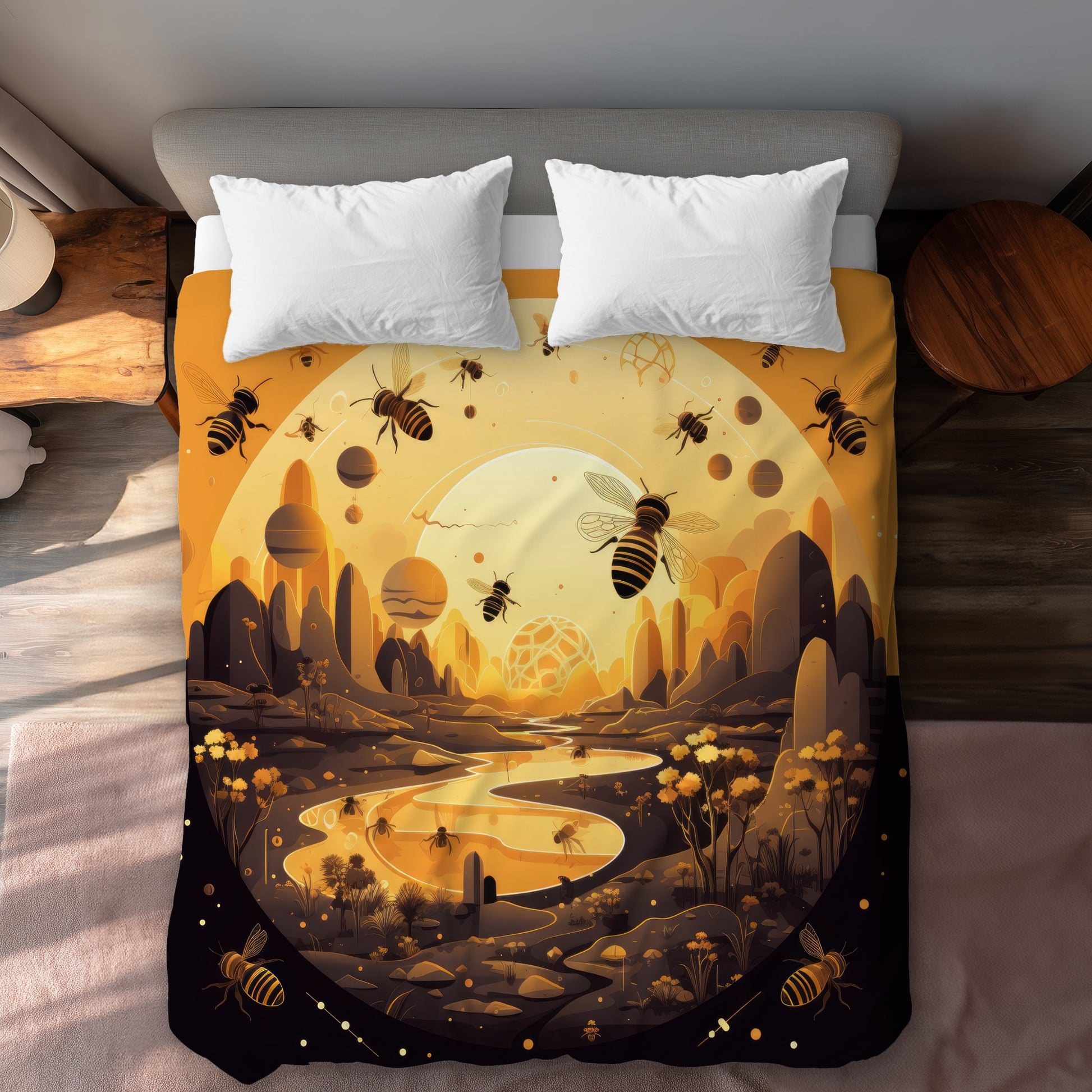 Hive planet - Transform your bedroom with the vibrant charm of our yellow duvet cover. Crafted from high-quality, breathable fabric, this duvet cover not only enhances your home's decor but also ensures a cozy and comfortable night's sleep. The cheerful yellow hue adds a pop of color, making it perfect for creating a warm and inviting atmosphere. Whether your style is modern, bohemian, or minimalist, the Hive planet duvet cover effortlessly complements various interior themes. Easy to care for and machine washable, it offers both style and convenience. Pair it with coordinating pillows and throws to complete the look. Ideal for year-round use, this duvet cover is a must-have for anyone looking to refresh their space. Elevate your bedroom decor with Hive planet and enjoy the perfect blend of comfort and style. Make your home a haven with this stunning yellow duvet cover today!