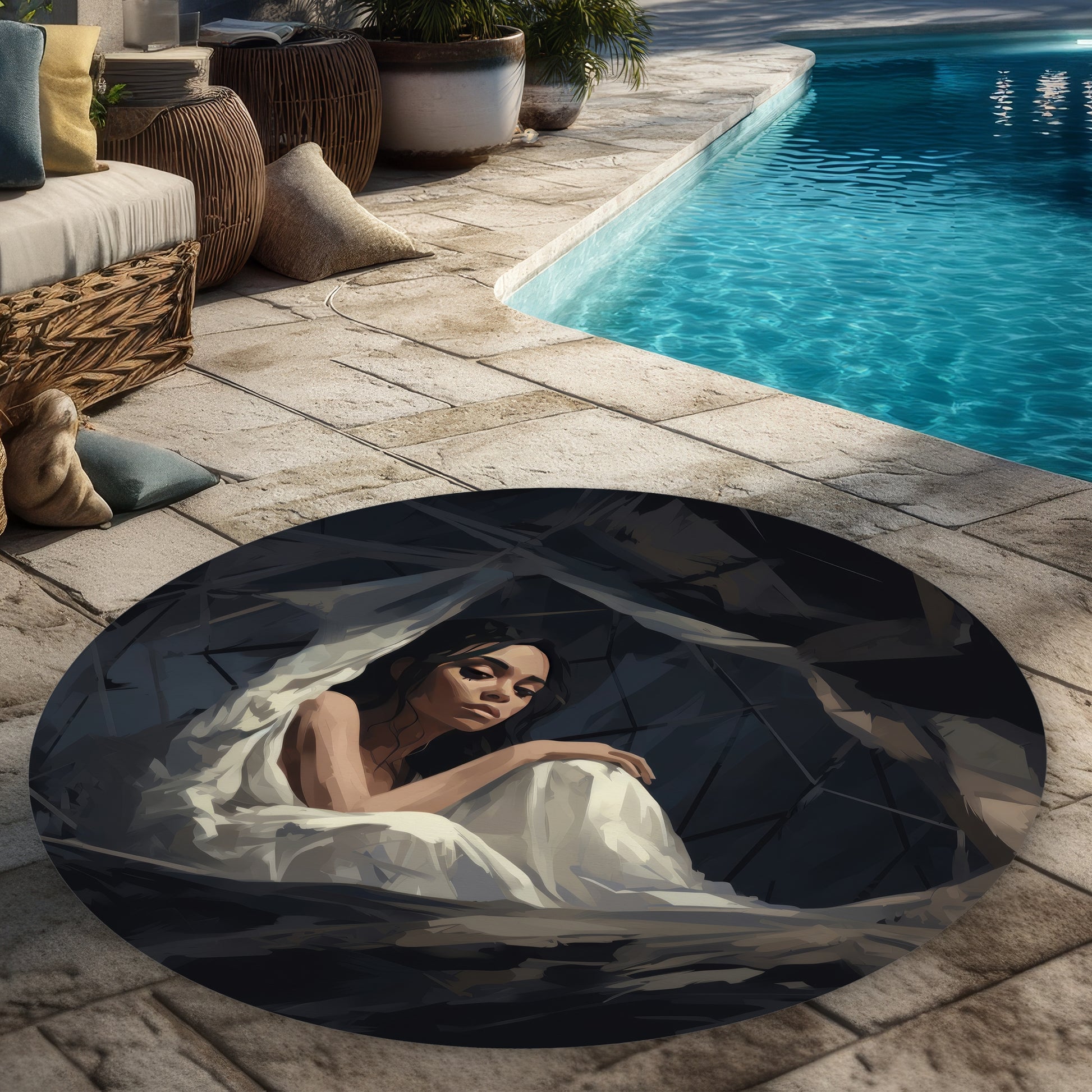 Cocooned is a stylish 5' round outdoor area rug designed to elevate your home decor. Perfect for patios, decks, or gardens, this rug combines durability with a chic aesthetic. Made from high-quality, weather-resistant materials, Cocooned withstands the elements while adding a touch of elegance to your outdoor space. Its soft texture ensures comfort underfoot, making it ideal for gatherings or quiet moments outdoors. The versatile design complements various styles, from modern to bohemian, enhancing your outdoor furniture and overall decor. Easy to clean and maintain, Cocooned is the perfect addition to your home, creating a cozy and inviting atmosphere. Transform your outdoor area into a stylish retreat with this exquisite round rug that combines functionality and beauty. Perfect for enhancing your patio decor, Cocooned is a must-have for those who love to entertain or simply relax in nature. Discover the perfect balance of style and practicality with Cocooned, your go-to outdoor area rug for all seasons. Upgrade your outdoor living experience today!