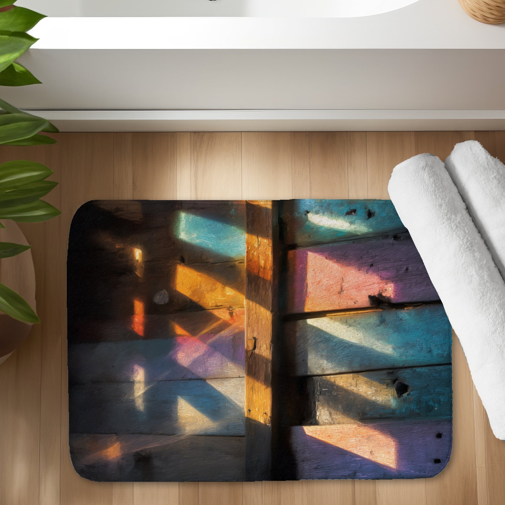 Perfect for modern, contemporary, or eclectic interiors, this bath mat is not just a functional accessory but also a statement piece. Whether you're redecorating your bathroom or looking to refresh your home, Casting rainbows is the ideal choice for those who appreciate style and comfort. Elevate your home decor with this eye-catching bath mat and enjoy the perfect blend of functionality and design.