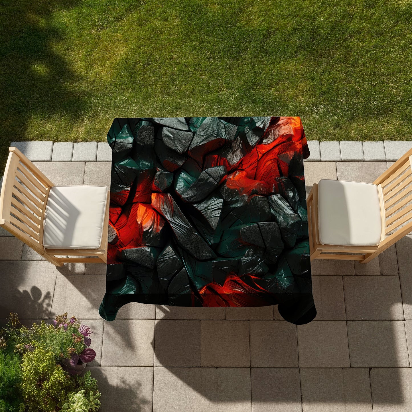 Hiding under is a vibrant red indoor/outdoor tablecloth designed to elevate your home decor. Perfect for dining rooms, patios, or picnics, this tablecloth combines style and functionality. Made from high-quality, durable materials, it is resistant to spills and stains, ensuring easy cleanup for everyday use or special occasions. The bold red color adds a pop of warmth and cheer to any setting, making it ideal for festive gatherings, holiday celebrations, or casual family meals.