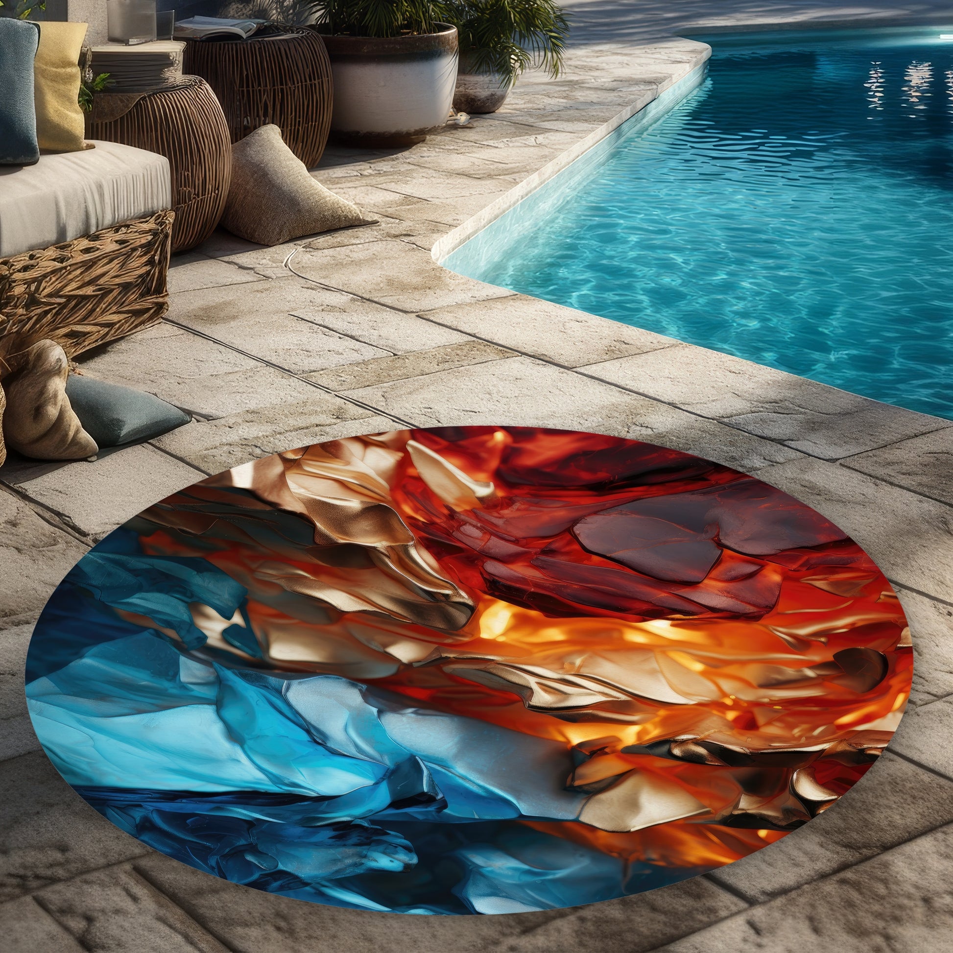 Mineral contrast is a stunning red round outdoor area rug that effortlessly enhances your home decor. Crafted with durable materials, this rug is designed to withstand the elements while providing a vibrant pop of color to your patio, deck, or garden. Its eye-catching red hue creates a warm and inviting atmosphere, making it the perfect accent for outdoor gatherings or lounging spaces. The round shape adds a unique touch, complementing various furniture arrangements and outdoor settings. Easy to clean and maintain, Mineral contrast is ideal for busy households seeking both style and functionality. Elevate your outdoor experience with this beautiful area rug that blends aesthetics and practicality. Transform your space today with Mineral contrast, the ultimate choice for stylish outdoor decor. Whether you’re hosting a summer barbecue or enjoying a quiet evening under the stars, this rug will provide comfort and elegance. Shop now to bring home this exquisite outdoor essential that will impress family and friends alike.