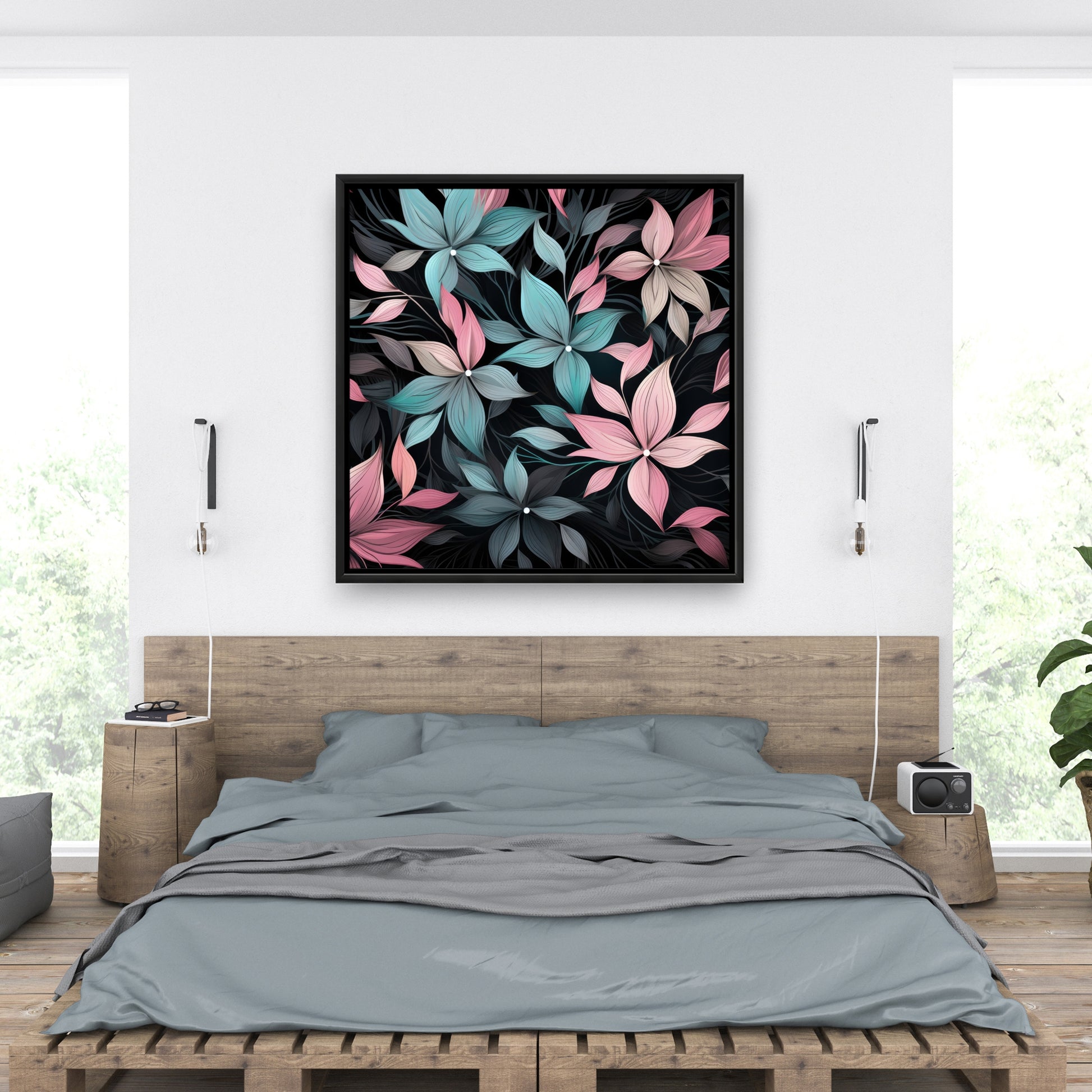 Desaturated flowers - 36"x36" Framed canvas