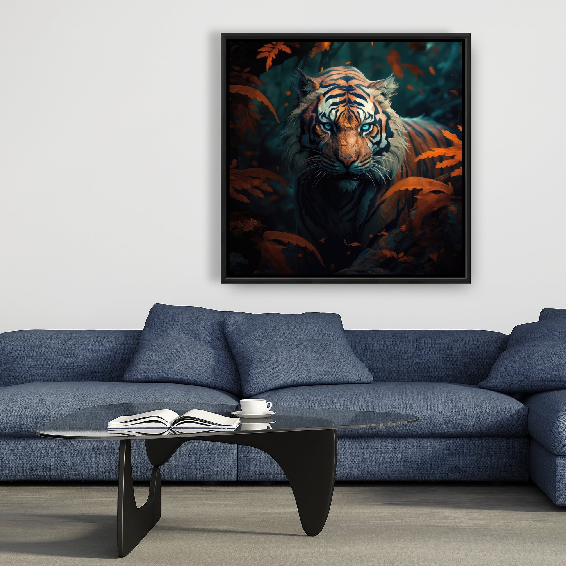 The bold orange frame adds a pop of color, making it an ideal choice for those looking to elevate their decor style. Its versatile design allows it to blend seamlessly with various color palettes and themes. Whether you're decorating a new space or refreshing your existing decor, Observed is the perfect accent piece.