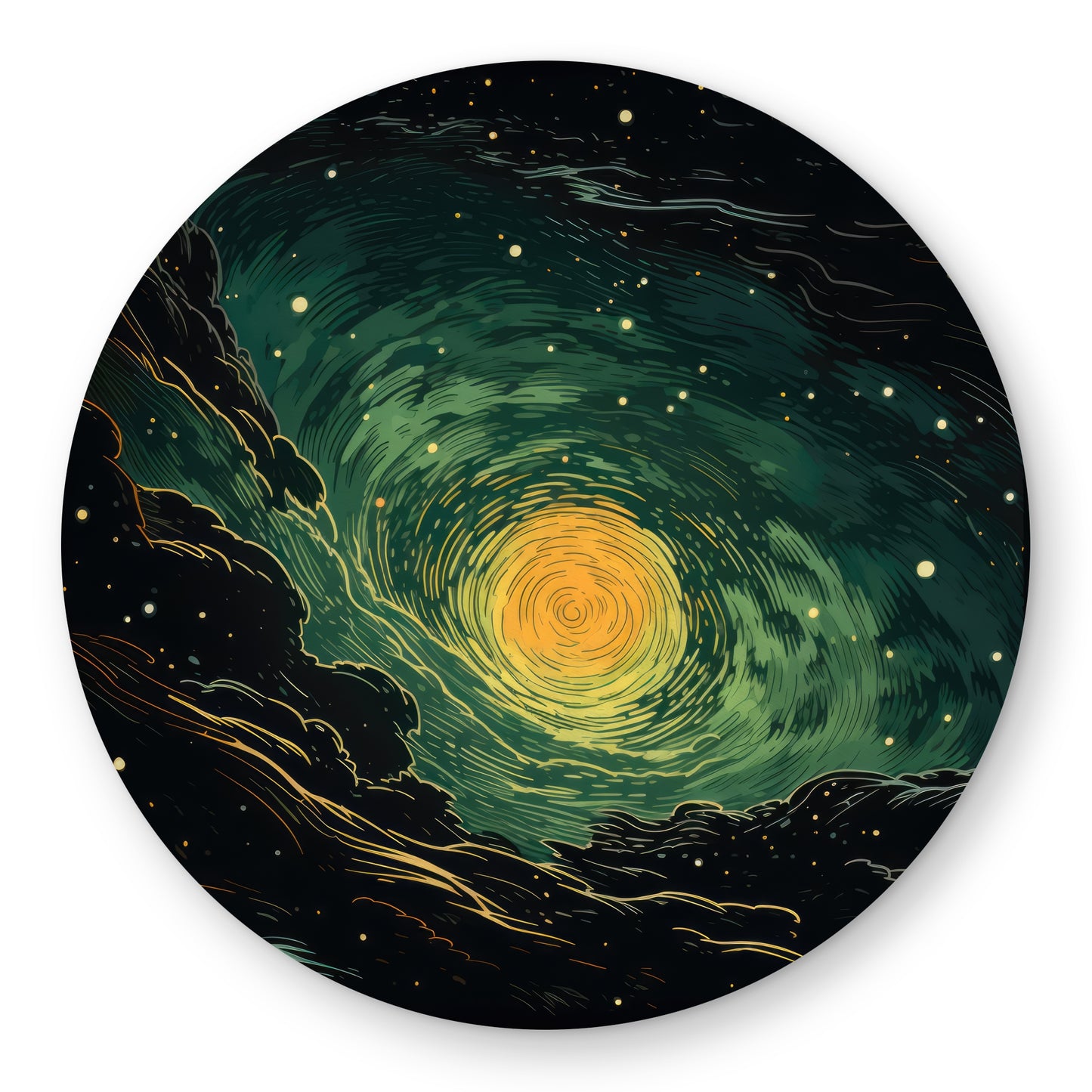 Turmoil in Space - Yellow Round Outdoor Area Rug for Home Decor